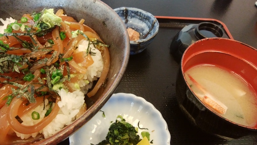 寄ったが、午後2時過ぎで、かに売り切と言われ、いか丼(900円)を注文。