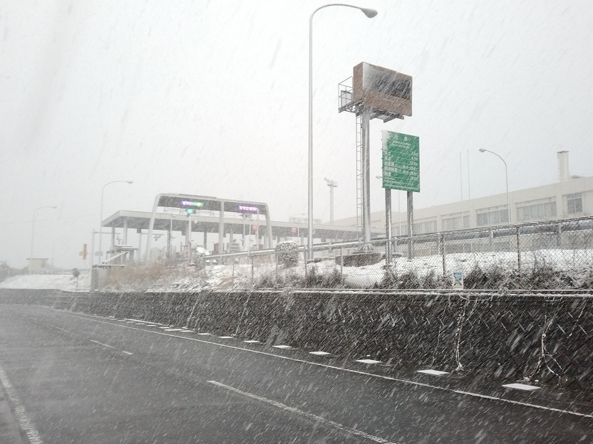 あっという間に雪景色。高速道路の入口も寒そうです。