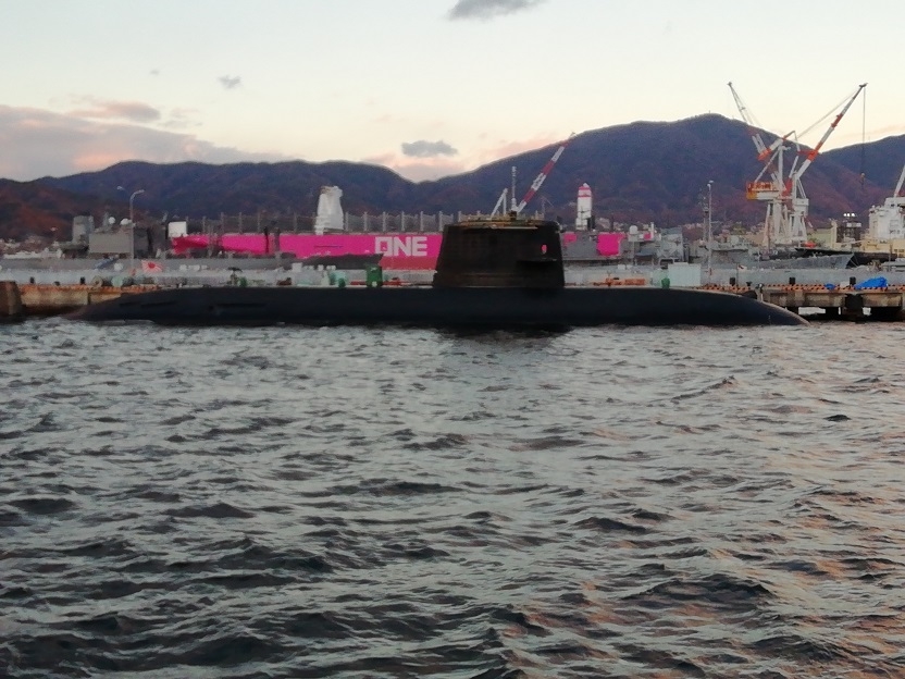 広島、宇品港に向かいます。呉港では、減速して海上自衛隊呉基地の周辺を航行。