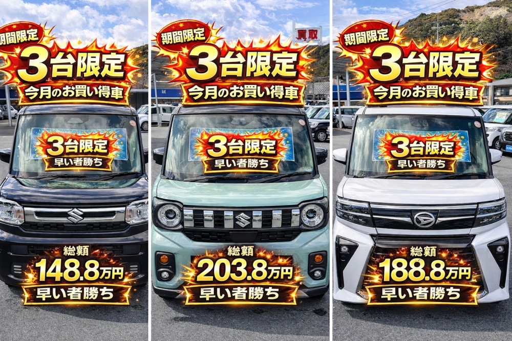 今月だけの緊急企画。 人気の未使用車を3台限定で大特価にてご案内します。