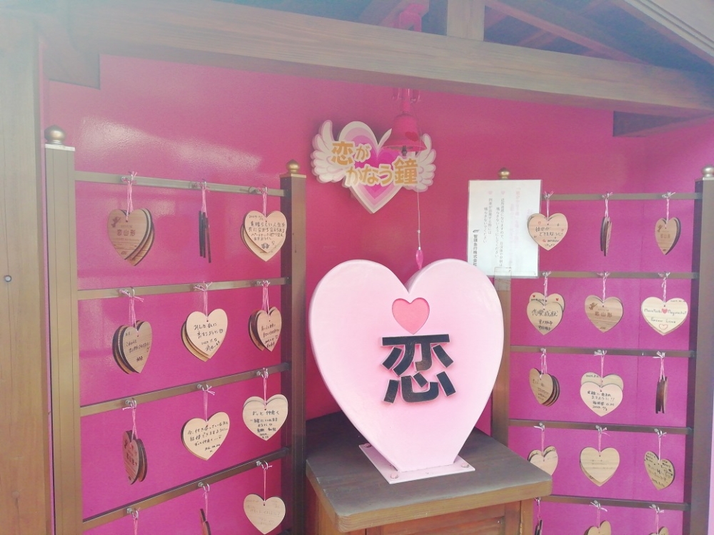 思いのこもった絵馬は、駅のホームに飾れ、恋がかなう鐘を
