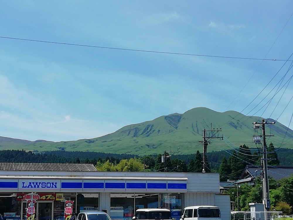 目的地へ到着!!駅前のコンビニ越しに見る雄大な景色。