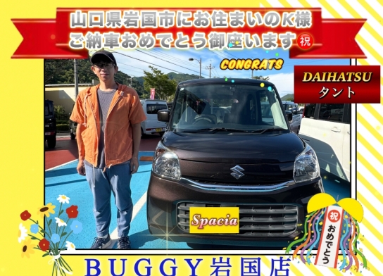 山口県岩国市にお住まいのK様ご納車おめでとうございます㊗️スズキ『スペーシア』のご納車でし…