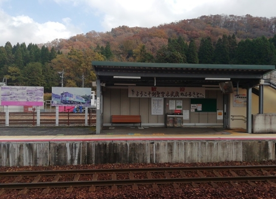 大原駅から約15分、この先の長いトンネルを抜けると鳥取県という県境の駅「あわくら温泉駅」に…