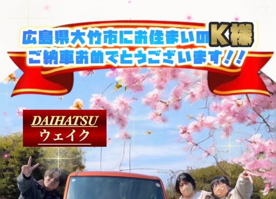 広島県大竹市にお住まいのK様ご納車おめでとうございます㊗️ダイハツ【ウェイク】のご納車でし…