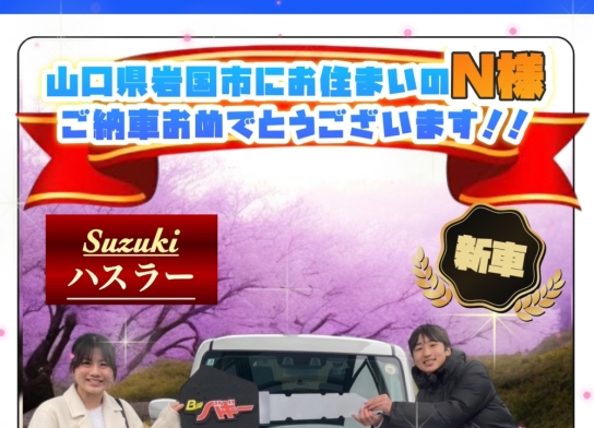 山口県岩国市にお住まいのN様ご納車おめでとうございます(o^^o)スズキ『ハスラー』のご納…